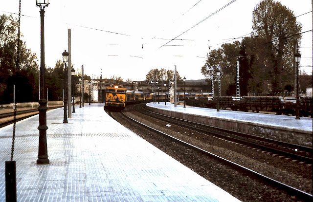 De 1990 sólo conservo una imagen de una "doscientas" entrando en Aranjuez a última hora de la tarde con un largo "rápido" de Andalucía, en el que se aprecia una gran preponderancia de coches "nuevemiles"