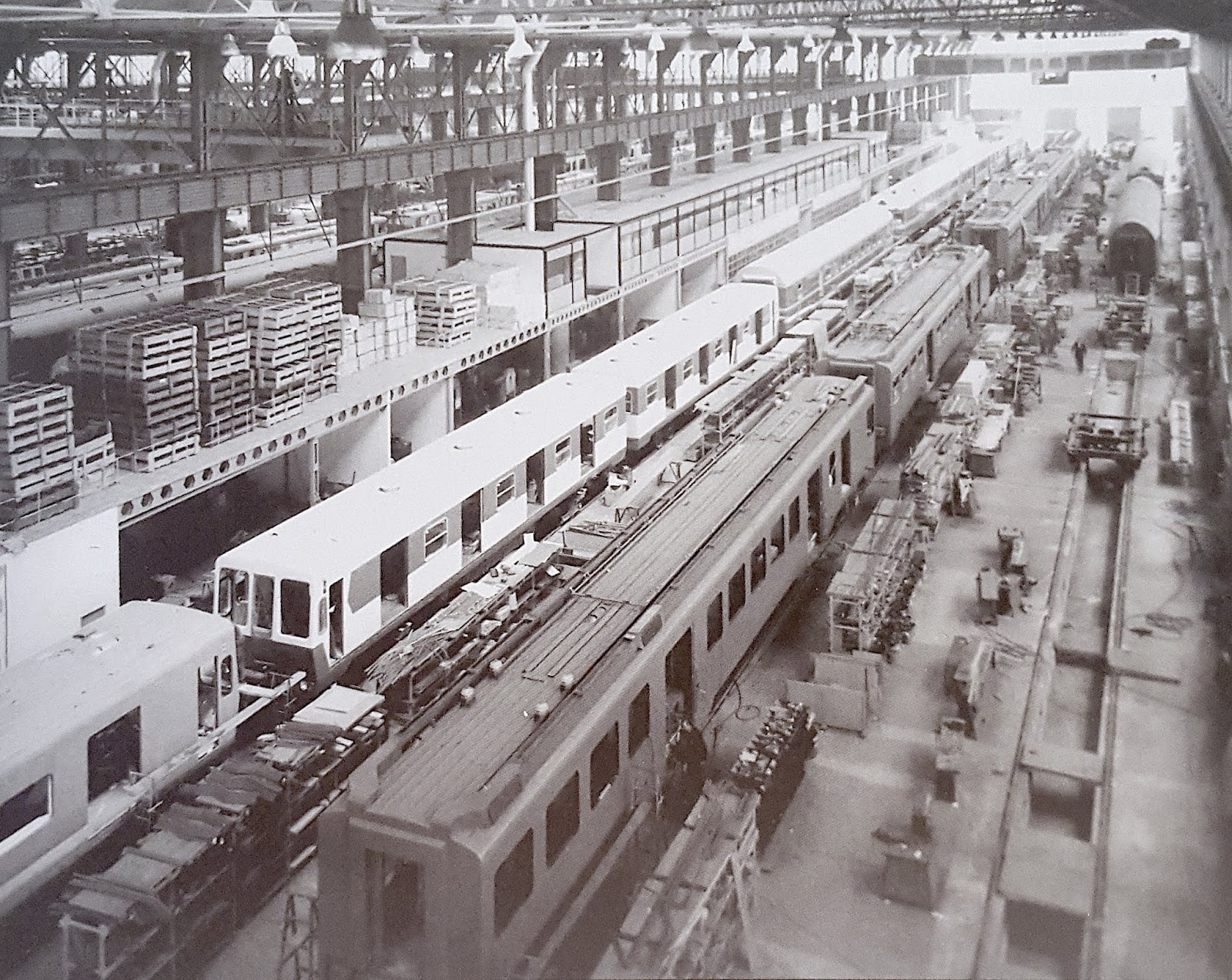 | Construcción de coches motores de las 440 en la factoría de CAF de Beasain (foto: CAF) |