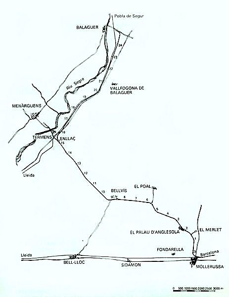 | Plano de la línea (Tomado del libro "El Ferrocarril de Mollerusa") |