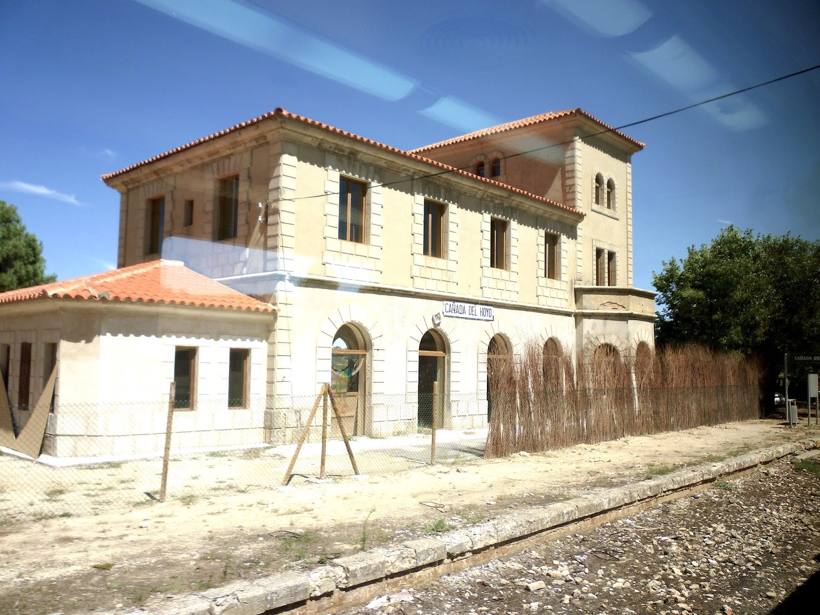 | La estación abandonada de Cañada del Hoyo, en el tramo entre Cuenca y Camporrobles, desde la ventanilla de un "camello" 592 (foto: Ángel Rivera) |