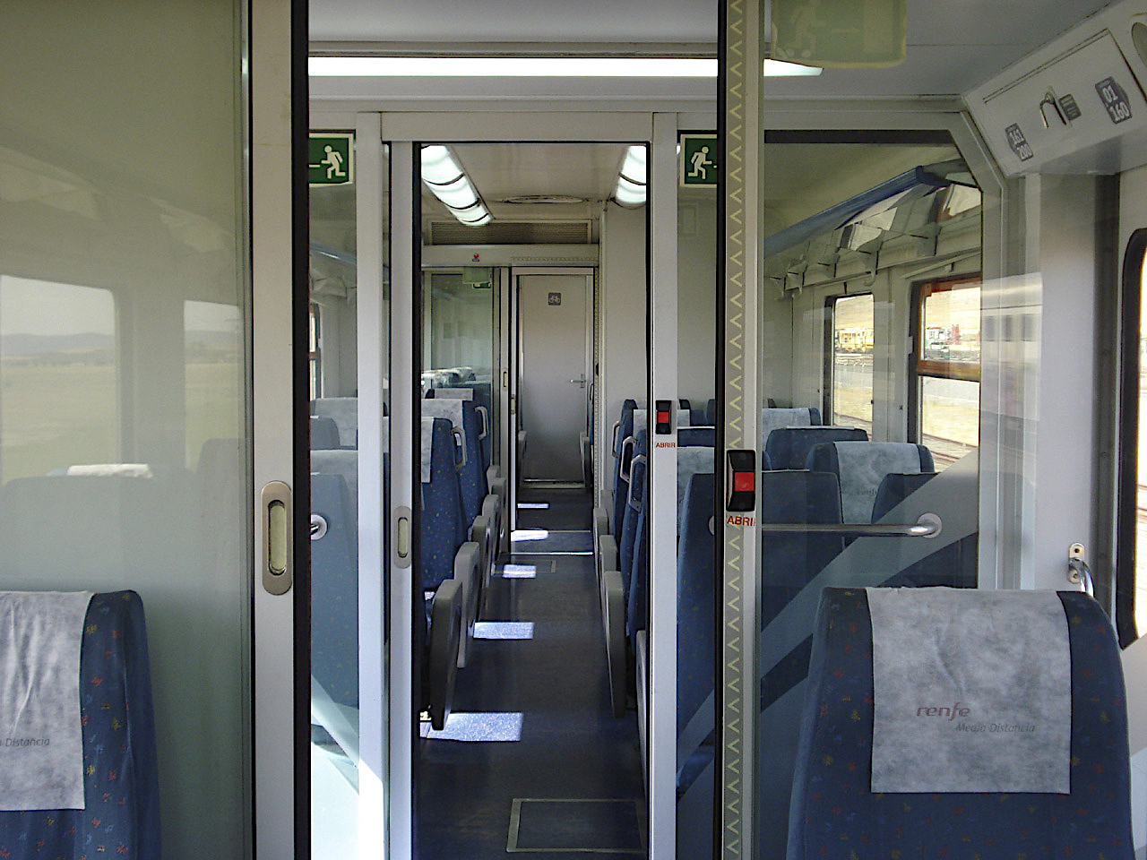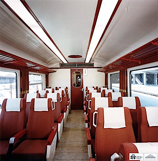 A mediados y finales de los 80, la necesidad de utilizar algunos 592 para servicios de larga distancia, llevó a acometer en ellos distintas reformas. Una de ellas, fue establecer una zona de primera clase, utilizando asientos de primera clase de los TER que se iban dando de baja y que eran famosos por su gran comodidad (Foto: Tomás Flores)