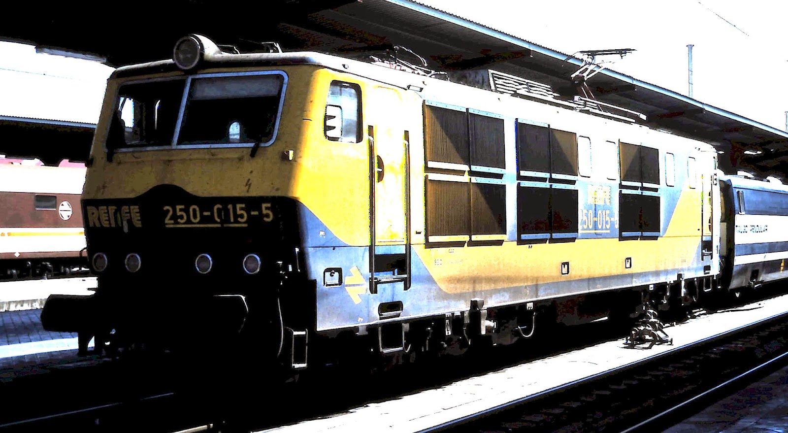 La 250-015 en Madrid Chamartín en cabeza de un talgo pendular con destino Barcelona. Julio 1988 (foto: Ángel Rivera)