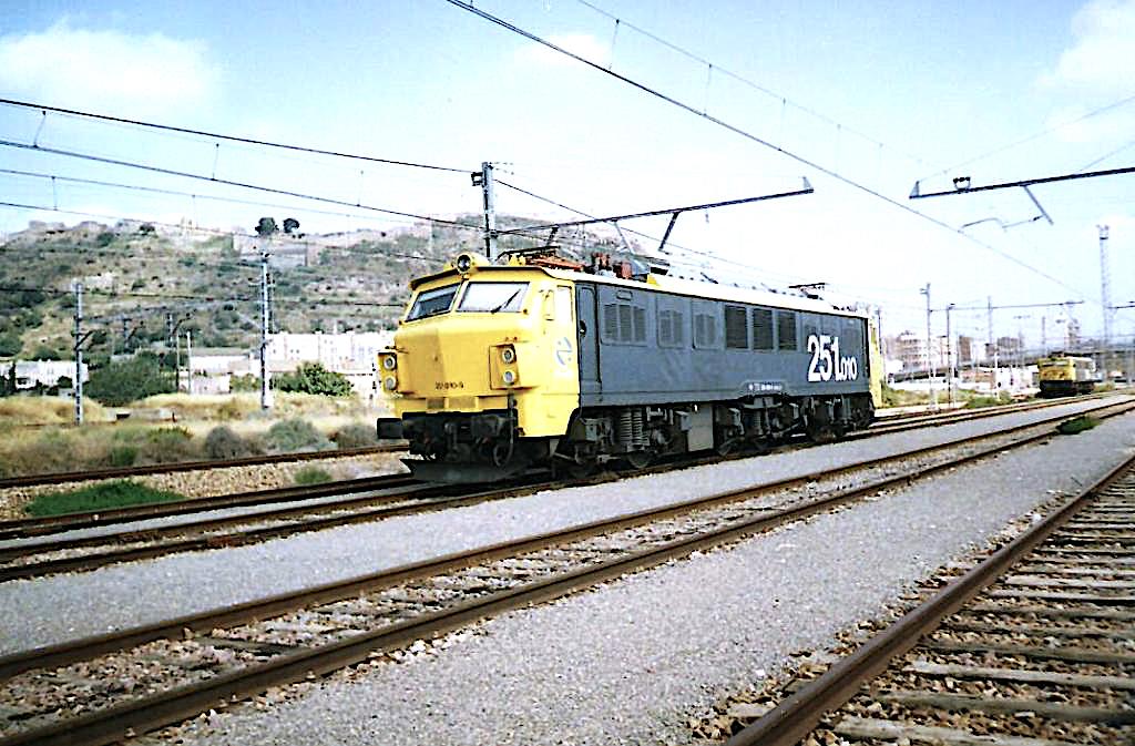 | La 251-005 en la estación de Aranjuez (foto: Ángel Rivera) No es tan fea como la amarillo-negra pero, dadas las dificultades para mantener limpias las máquinas, la suciedad destaca mucho más. A este respecto no hay más remedio que señalar la penosa imagen exterior que presentan muchas ellas agravada en muchos casos por acciones de grafiteros.