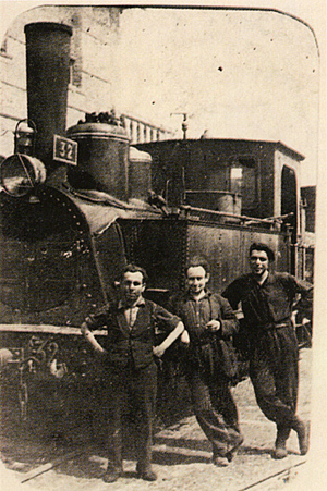 | Ferroviarios junto a la 32 (tomada de la Gran Enciclopedia Aragonesa) La 33 "Tudela" en estado de origen (Foto: Instituto de Estudios Turiasonienses)