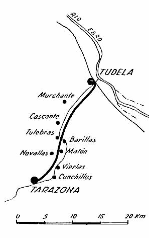 | La línea de Tudela a Tarazona remontaba el río Queiles durante unos 20 km salvando un desnivel de unos 200 metros (gráfico: EFE) |