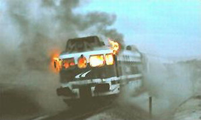 | La 354-005 en pleno incendio (foto: autor desconocido) |