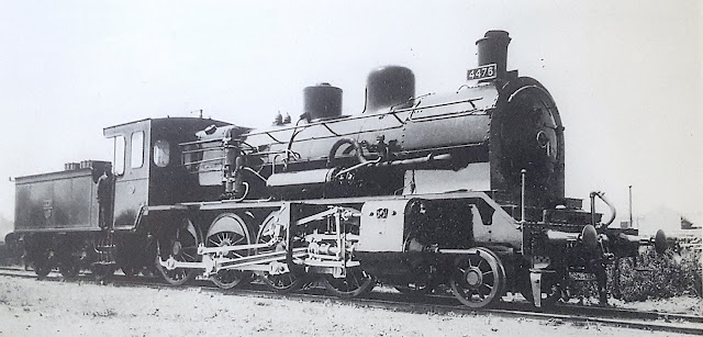 Las locomotoras de las que hoy me ocupo empezaron a conocerse en la Compañía del Norte como "las cuatrocientas nuevas" para distinguirlas de otra serie "cuatrocientas" anterior, la 461 a 480, que pasó a ser la 1461 a 1480, y de la que ya me ocupé en esta entrada. En cualquier caso, muy pronto pasaron a ser "las cuatrocientas" por antonomasia. Y como "las cuatrocientas Norte" las hemos conocido siempre ferroviarios y aficionados. Aunque desgraciadamente -una vez más- no se ha conservado ninguna de ellas, su recuerdo permanece muy vivo, ya que fue la serie con mayor número de locomotoras del ferrocarril español. Al haber sido elegidas estas locomotoras por Norte como sus máquinas "universales" (salvo para la tracción de expresos y rápidos) y aunque su tecnología fuera quedando muy anticuada, entre 1909 y 1943 se construyeron nada menos que 438 locomotoras de este tipo. De ellas, 127 lo fueron en el extranjero y 311 en factorías españolas. Ello obligó a Norte a usar en su matriculación las numeraciones 400, 4400, 4700, 4800 y 4900. Fue con mucho la compañía que más las utilizó ya que tuvo 412, pero también la Compañía del Oeste llegó a tener 23 y el Estado adquirió tres.