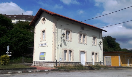 El primer «Déjà vu» que vivía el conocedor del ferrocarril de Santander a Bilbao al visitar las líneas de la Sociedad Vasco-Asturiana lo experimentaba nada más llegar a la estación, ya que el modelo elegido para sus edificios era prácticamente idéntico al que Valentín Gorbeña había utilizado en la línea vasco-cántabra, que, a su vez, era una evolución de las que había diseñado para su predecesor más inmediato: el ferrocarril del Cadagua, de Zorroza a Balmaseda. Como señala el historiador José María Flores, el propio Gorbeña justificó su decisión en que este modelo ya había sido aprobado por el Ministerio de Fomento, por lo que «no debería existir duda alguna respecto a la capacidad y buena disposición del mismo».