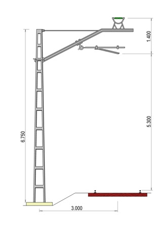 Los nuevos postes se dividían en dos familias, los tipos X, diseñados para vía general, y los Z, para soportar pórticos funiculares y ménsulas para alimentar varias vías. En concreto, el tipo X tenía una altura total, incluida la base de empotramiento, de 6,750 metros, frente a los once metros comunes en los utilizados en las electrificaciones previas realizadas por la Compañía del Norte.