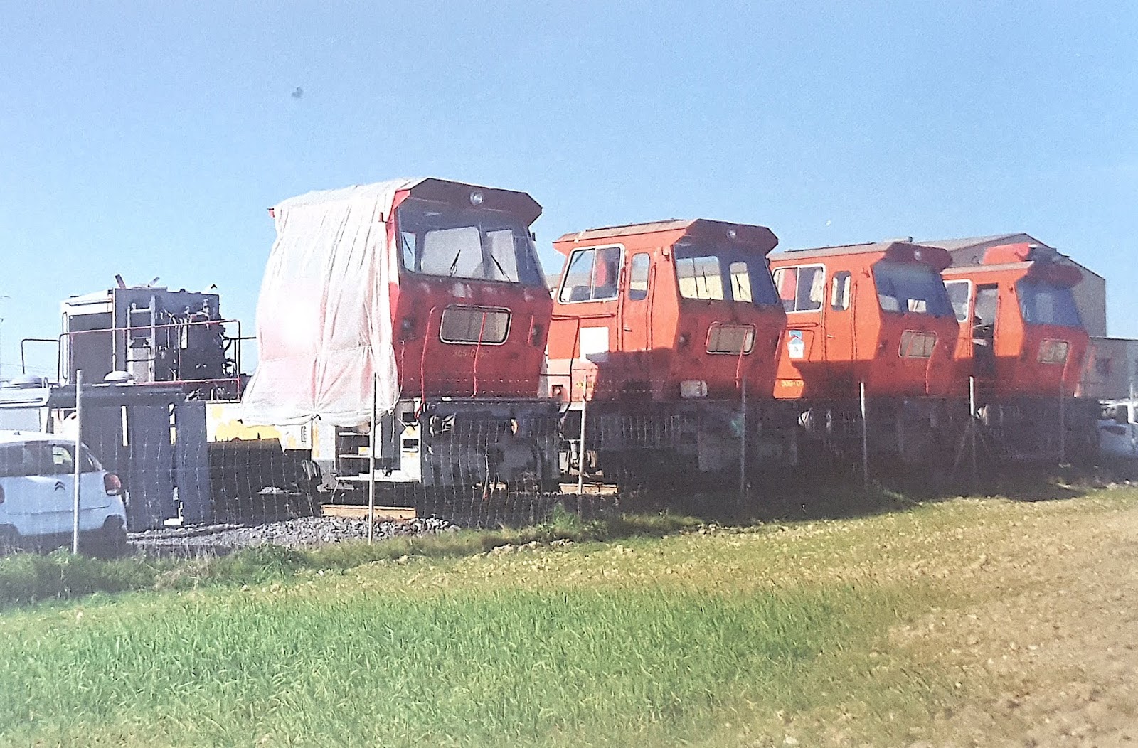 | Las cuatro locomotoras 309 adquiridas por FESAVA a la espera de su puesta a punto en febrero de 2018. (foto: Juan J. Romero Rioja/CARRIL) |