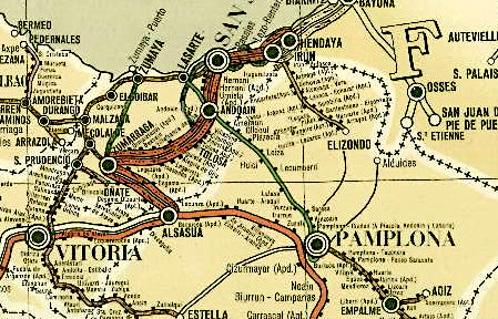 A partir de esta entrada, y a través de otras varias que la seguirán, recorreremos las interesantes "vías estrechas" que han tenido o tienen su recorrido, completo o parcial, por el País Vasco. Antes de empezar estos pequeños resúmenes quiero expresar mi reconocimiento y agradecimiento al impresionante trabajo de investigación y difusión que sobre todas ellas ha realizado Juanjo Olaizola y que ha dado a conocer a través sus múltiples publicaciones. Sin ellas me hubiera sido imposible redactar estas entradas. A esas publicaciones, algunas de las cuales iré reseñando, remito a cualquier persona interesada por profundizar en la historia, técnica o explotación de estos atractivos e interesantes ferrocarriles. Por otra parte ha sido muy importante poder contar con documentación gráfica del Archivo Euskotren/Museo Vasco del Ferrocarril.