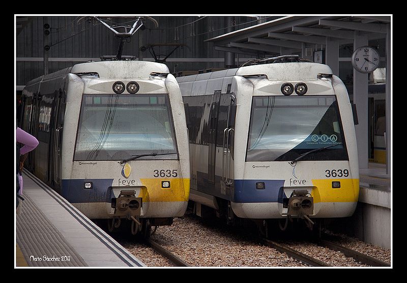 Las 3635-3636 y 3639-3640 en la estación de Gijón (foto: Mario Sánchez)