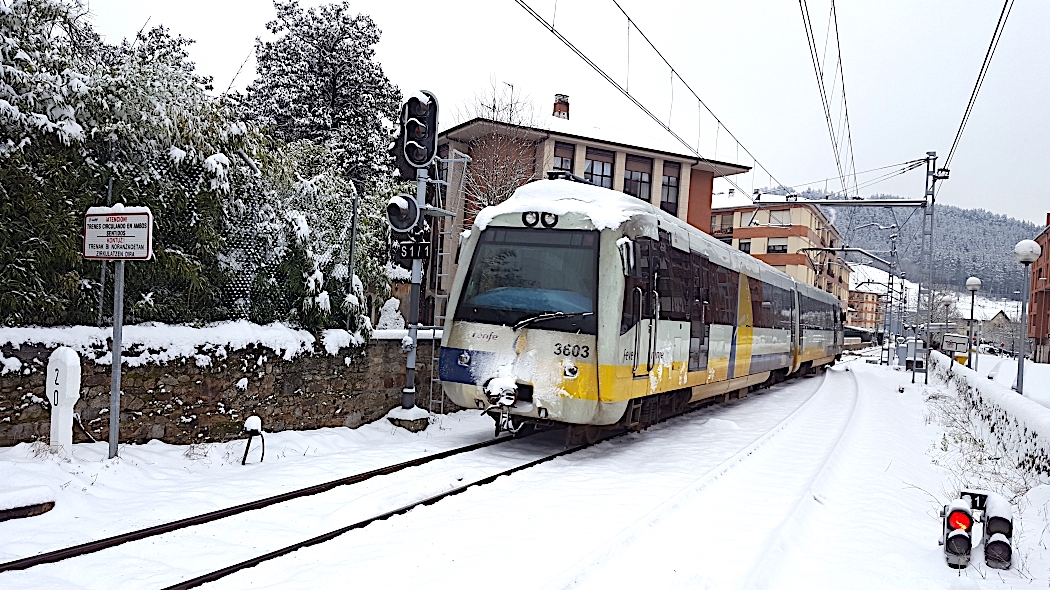 La 3603-3604 en Zalla, en plena nevada (foto: Iskander López)