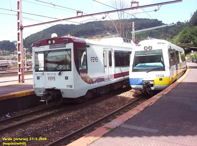 | De nuevo es la 3625-3626 la que coincide en Veriña con la 3526-6526, aún con la antigua librea y que pronto pasaría a ser transformada a la serie 3300 (foto: Maquinista 440) |