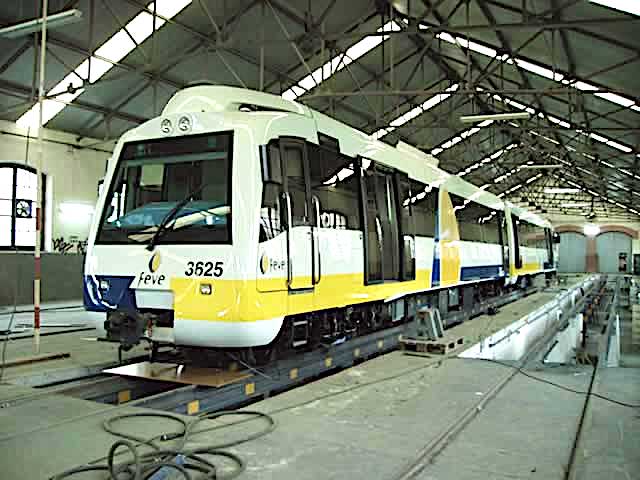 | La 3625-3626, primera de la segunda subserie, durante el proceso de puesta a punto en los talleres asturianos de Candás en el año 2006 (foto: Javier Diaz) |