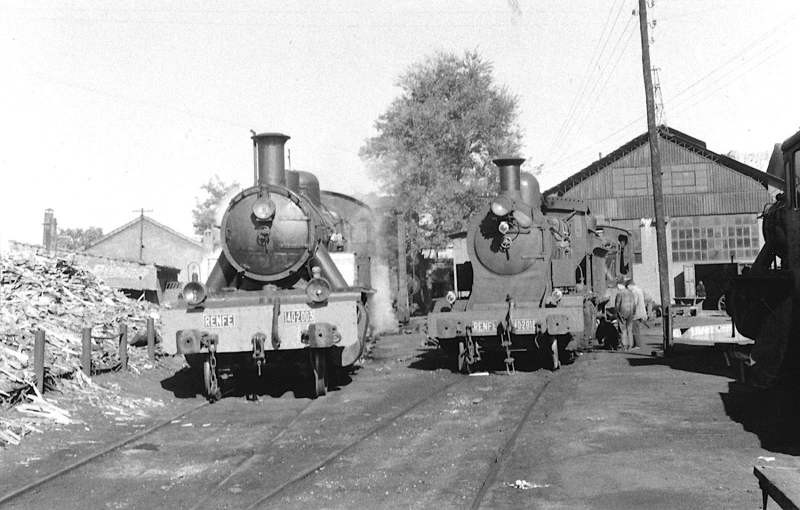 | Las 140-2001 y 140-2016 en el depósito de Guadix en octubre de 1965 (foto: Juan B. Cabrera/cortesía César Larriba) |