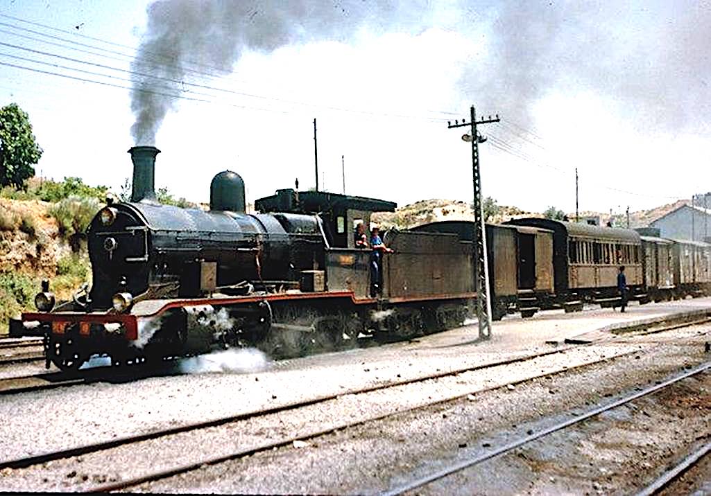 | La 140-2017 en Guadix en cabeza de un tren mixto. Año 1964 (foto: autor desconocido/cortesía de Juan A. Méndez Marcos) |
