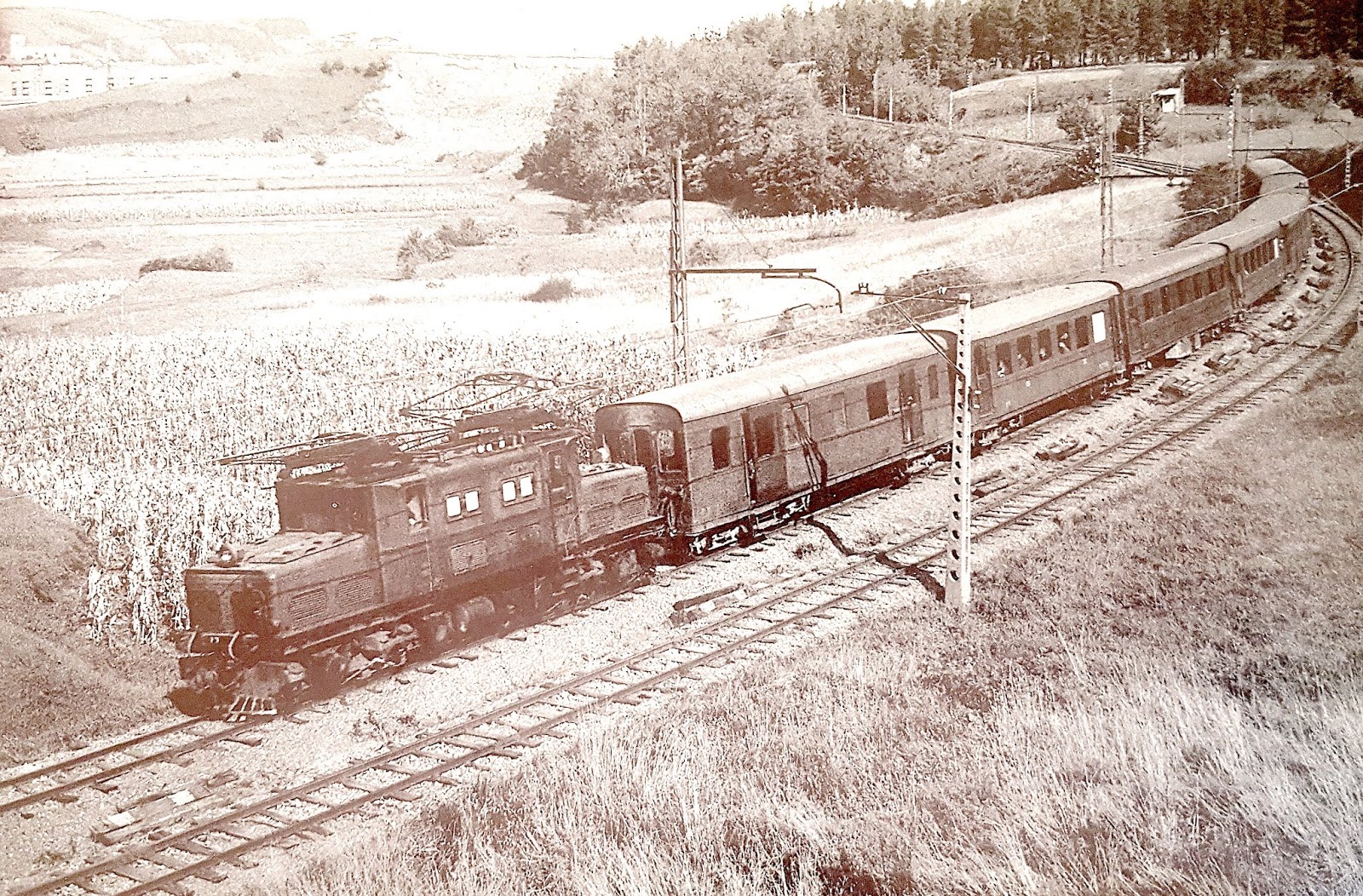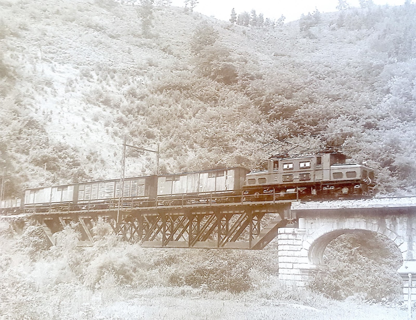 Como vimos en la anterior entrada dedicada a las compañías que dieron origen a los Ferrocarriles Vascongados, la finalización del trayecto directo entre Bilbao y San Sebastián y la utilización de las locomotoras Krauss-Engerth produjo un masivo incremento del tráfico, de tal modo que la línea corría riesgo de colapsarse en poco tiempo. Para evitarlo se planteaban distintas soluciones, tales como una rectificación de todo el trazado para que pudieran ampliarse velocidades y cargas o incluso una reconstrucción total de la línea, cambiando incluso al ancho de vía ibérico, y posibilitando así la utilización de vagones capaces de transportar mayor carga. Pero la solución que se adivinaba como más provechosa y adecuada era la electrificación. Finalmente, a principios de los años veinte, se optó por ella y en agosto de 1926 se aprobó el proyecto. En él se contemplaba la electrificación de toda la línea y sus ramales excepto el de Durango a las minas de Arrázola y Elorrio que por su escaso tráfico quedaría con tracción vapor.