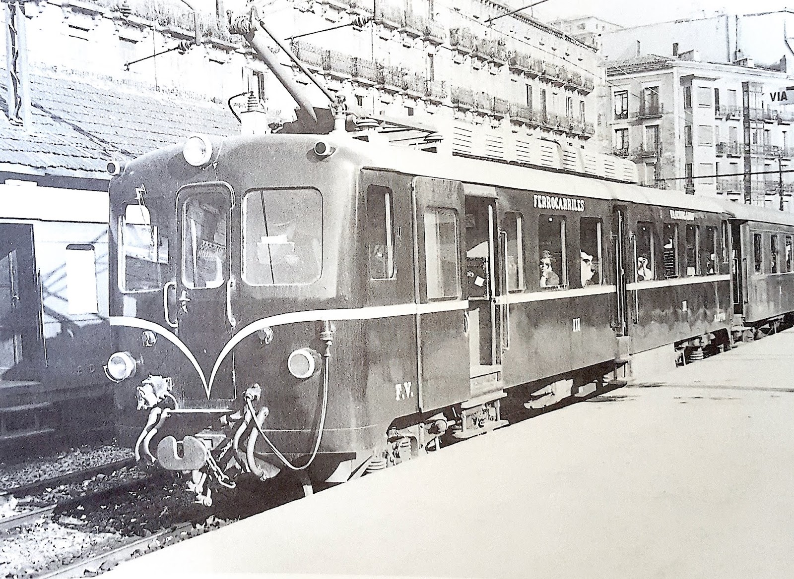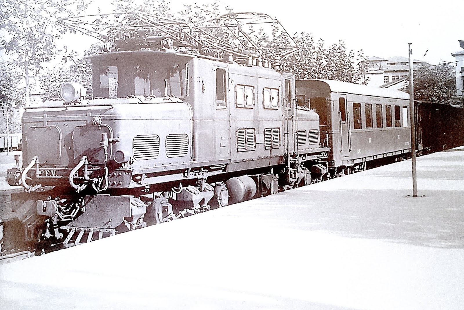 De nuevo la F.V. 10 en cabeza de un tren de viajeros (foto: autor desconocido) |