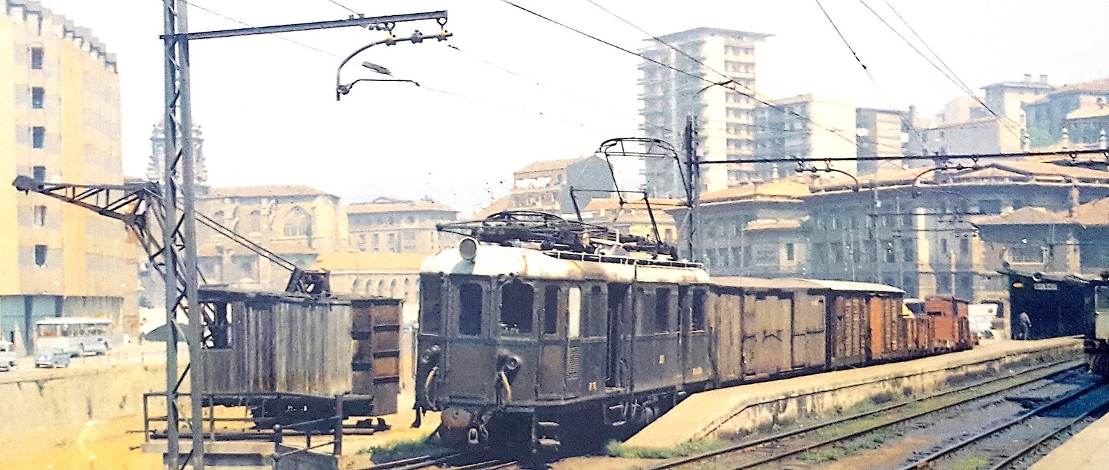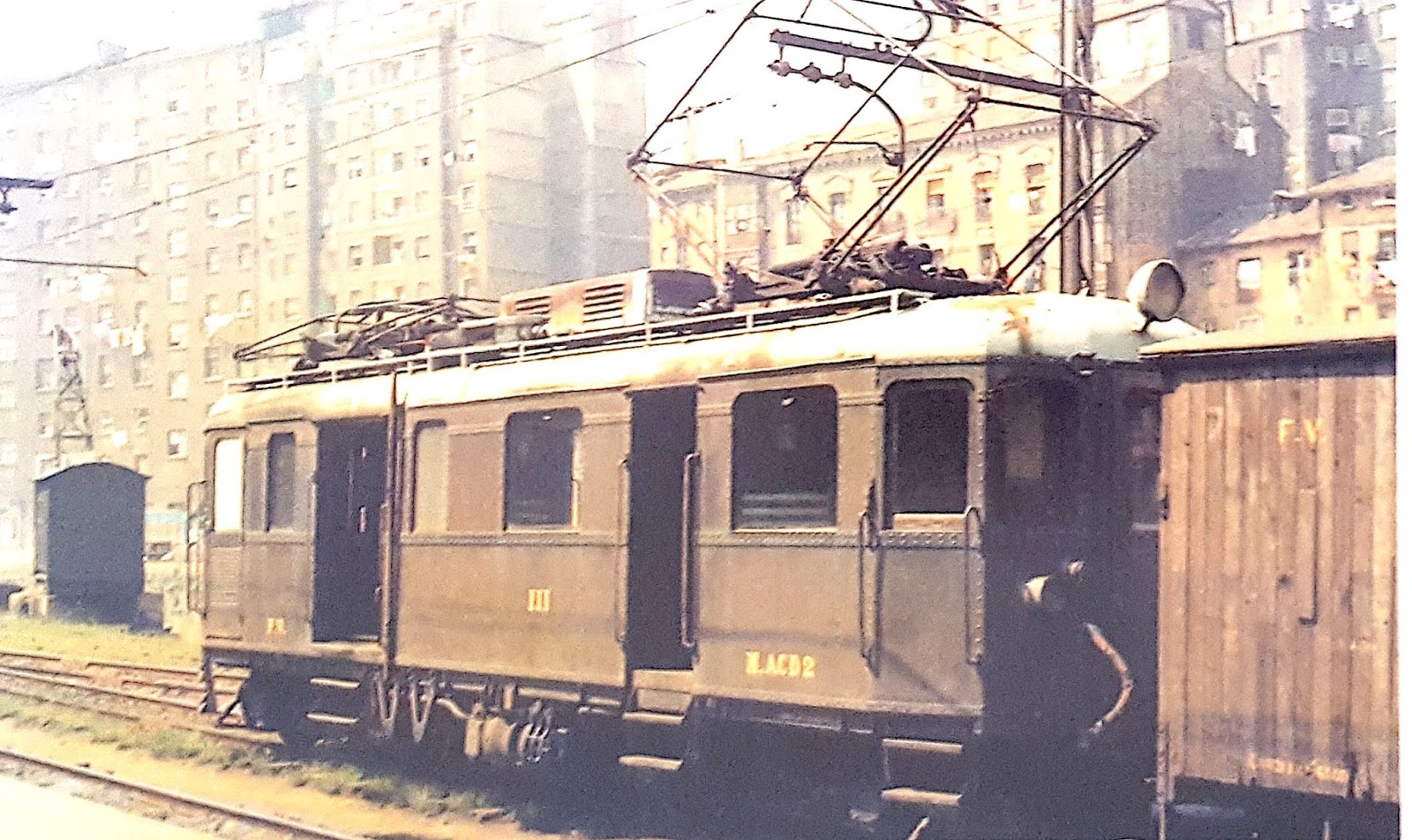 El M.ACD 2 en Bilbao en cabeza de un tren de mercancías en 1971 (foto: colección Javier Aranguren)
