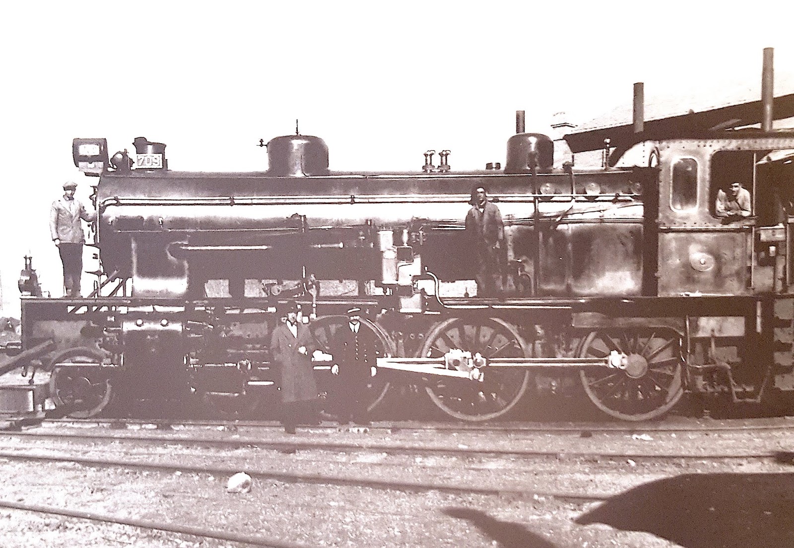 | La 709 del Oeste en 1928, probablemente recién recibida del Ferrocarril de Medina a Salamanca donde debió ser, de forma muy efímera, la 53 (foto: Pedro José Bueno/colección de Fernando Fernández Sanz) |