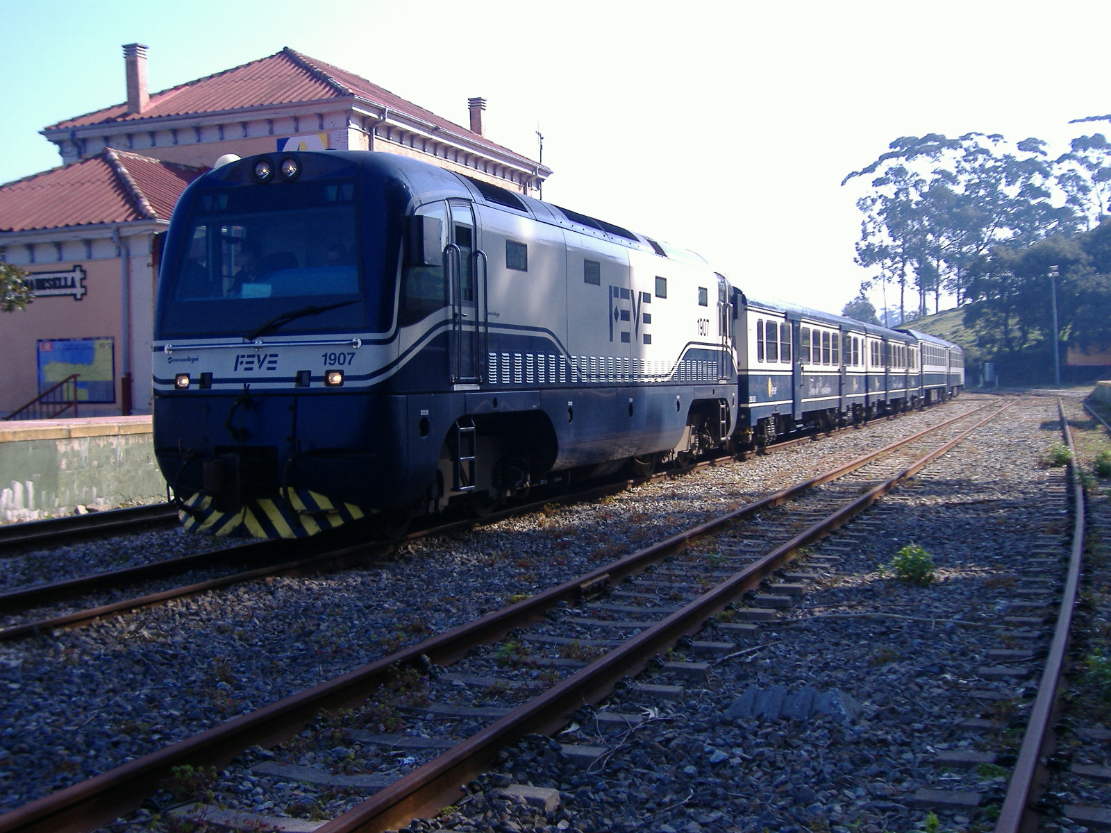 | La 1907 estacionada en Ribadesella con un tren especial (foto: Ramón Capín) |