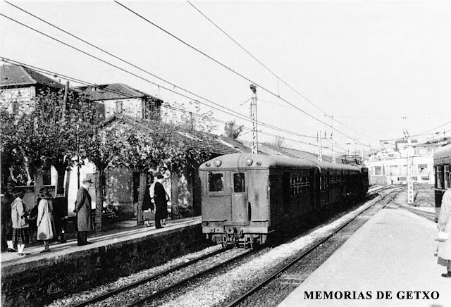 | Un tren entrando en Las Arenas procedente de Algorta (fondo Javier Aranguren) |