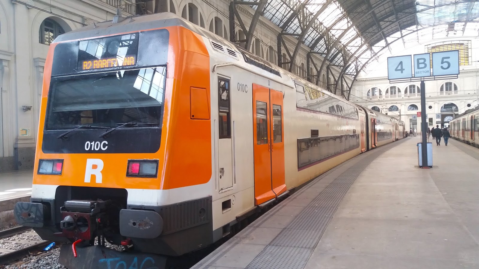 | La 450-015 con los colores de Rodalies en la estación barcelonesa de Francia (foto: David Cantero Duxans) |