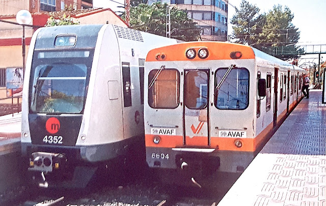 | Un tren de la serie 3900 y otro de la 4300. Aunque las cajas eran muy parecidas, los frontales variaban bastante. ¿Una sustitución demasiado temprana? (Valencia Plaza) |