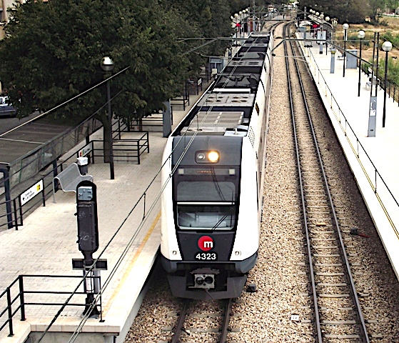 | La unidad 4331 compuesta de coche motor, remolque, motor intermedio, remolque y coche motor (Valencia Plaza) |