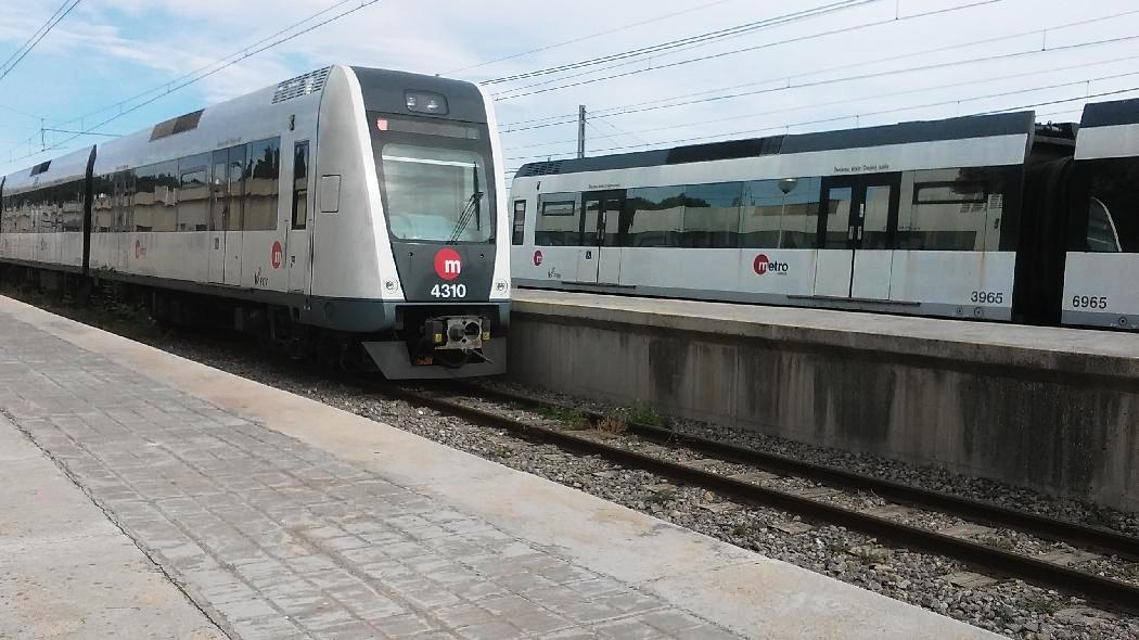| Una unidad de la primera subserie portando la letra "B" correspondiente al segundo coche motor en la estación de Maritim-Serrería en 2008 (Elfix/Wikipedia) |