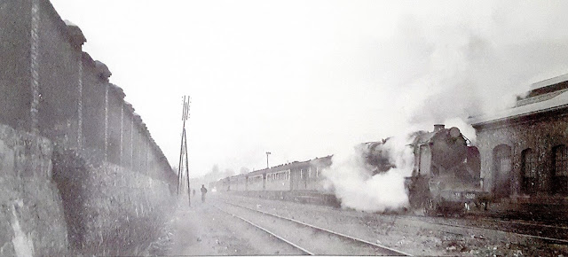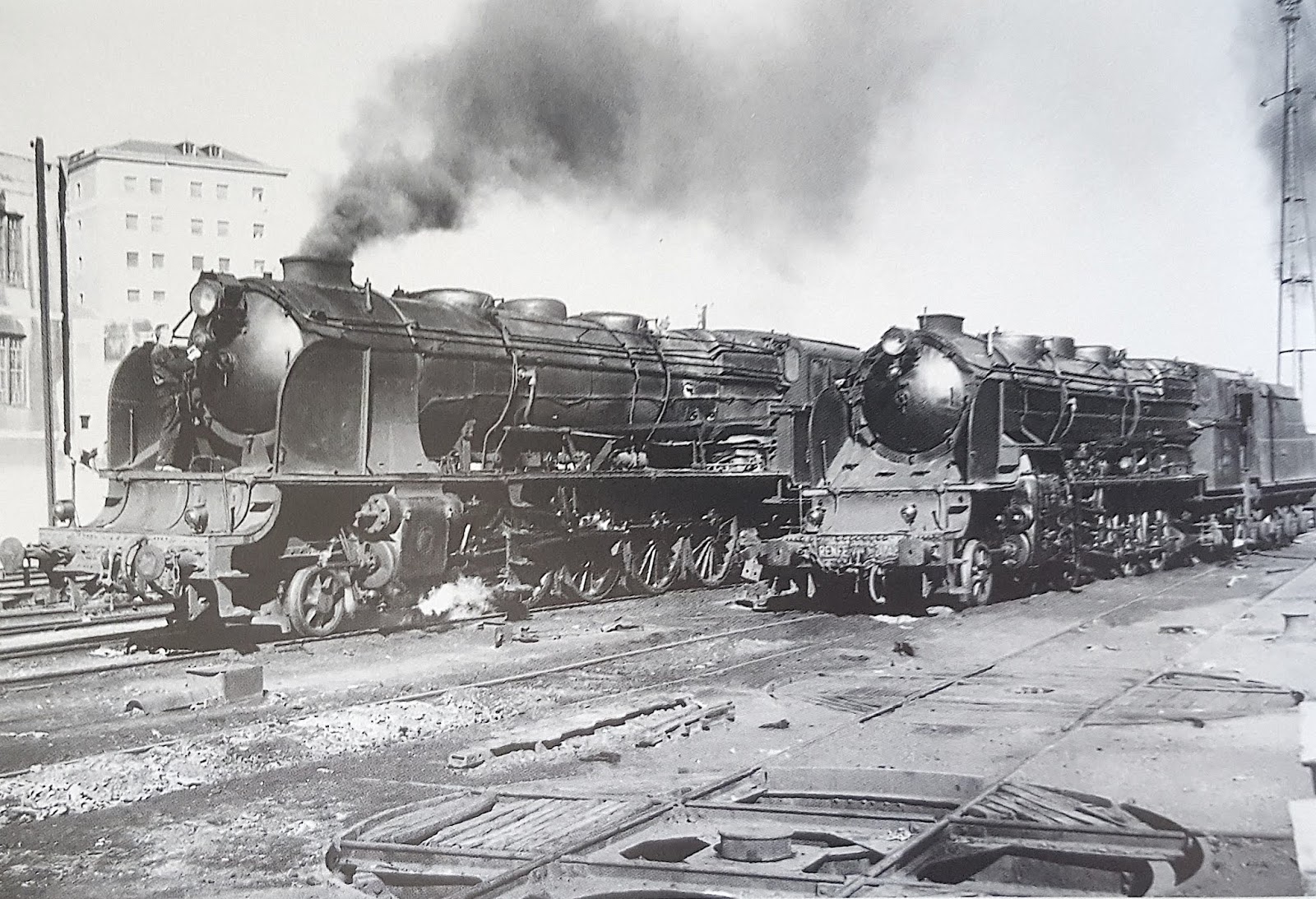| En octubre de 1963 Marshall obtuvo en Valladolid esta interesante imagen de una "montaña" de Norte (la 241-4037 a la izquierda) y otra ya de RENFE y de las que nos ocuparemos en una entrada posterior (la 241- 4093) |