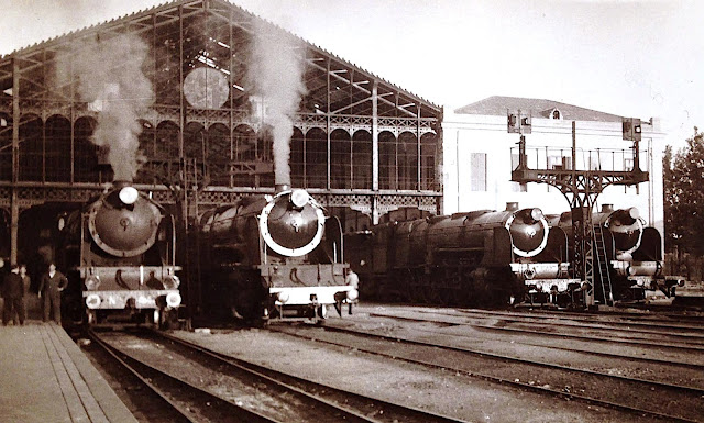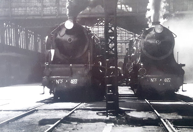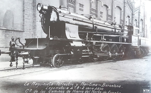 Como resultado de estos planteamientos ambas compañías se decantaron por el tipo 241 si bien con soluciones tecnológicas distintas. Mientras MZA optaba por la simple expansión, Norte se decidía por el sistema "compound". Y si MZA apostó fuertemente por la Maquinista Terrestre y Marítima encargando en 1923-1924 un primer lote de 25 locomotoras de su serie 1700, Norte optaba por encargar hacia las mismas fechas un lote de seis a Hanomag -iniciando así su serie 4600- seguido posteriormente por otros construidos ya en España. Las primeras locomotoras de ambas series se pusieron en operación en 1925 si bien parece que MZA se adelantó unos meses. Ambas fueron unas magníficas "montaña", si bien ese apelativo sólo se popularizó en el caso de las Norte mientras que las de MZA fueron siempre "las 1700". Como de éstas, por su adelanto en unos meses, ya me ocupé en la anterior entrada, ésta va dedicada a las 4600.