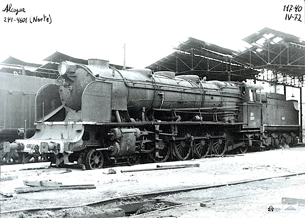 | En abril de 1972, fecha de esta foto, la 241-4001 (ex 4601) estaba apartada en Alcázar de San Juan, probablemente a la espera de su traslado al futuro Museo Ferroviario (AHF/MFM. Autor: Justo Arenillas) |