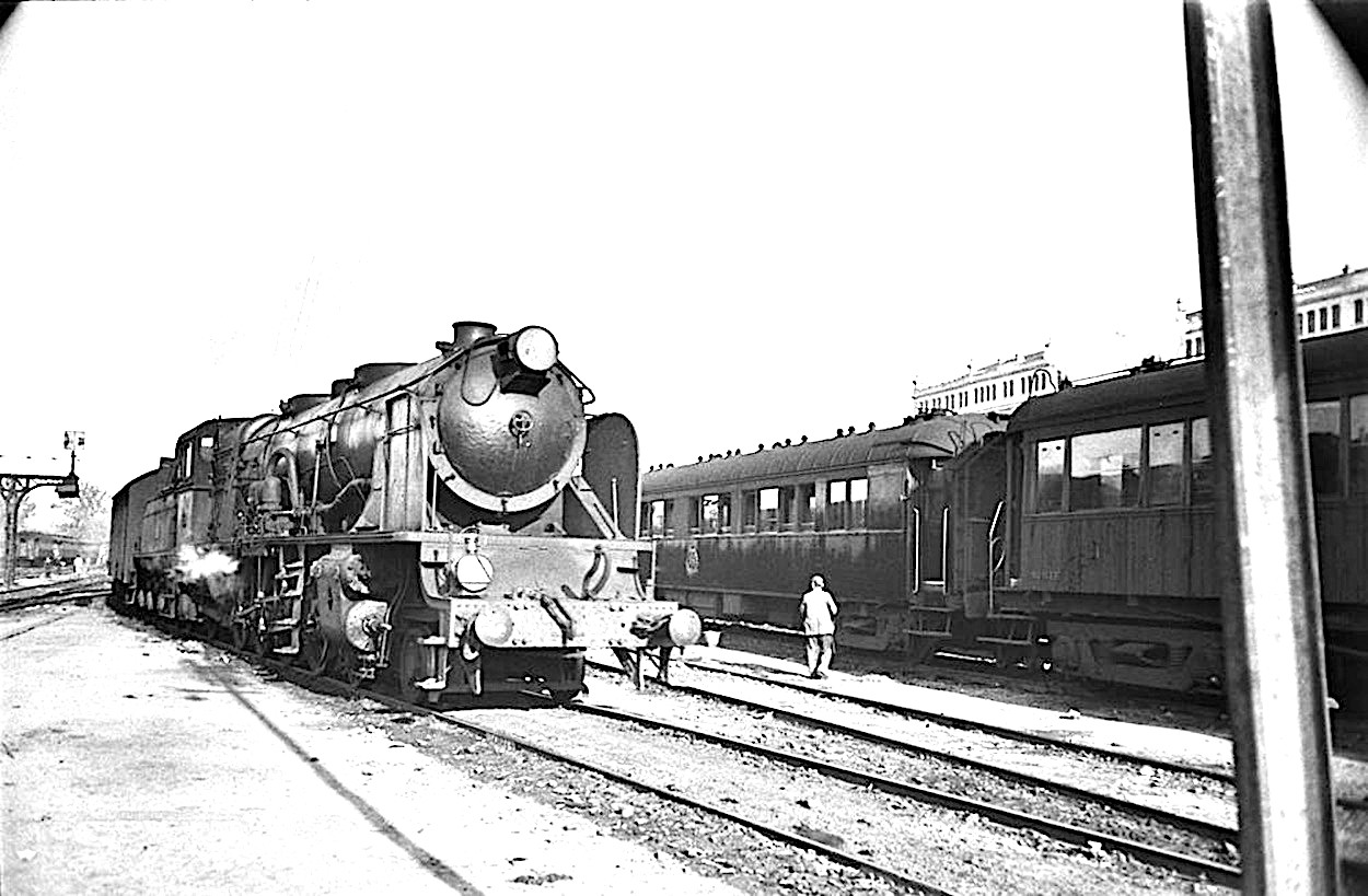 | La "moruna" RENFE 241-4062, (ex Norte 4095 y ex Andaluces 4305) en Zaragoza en 1963 (J. Morell) |