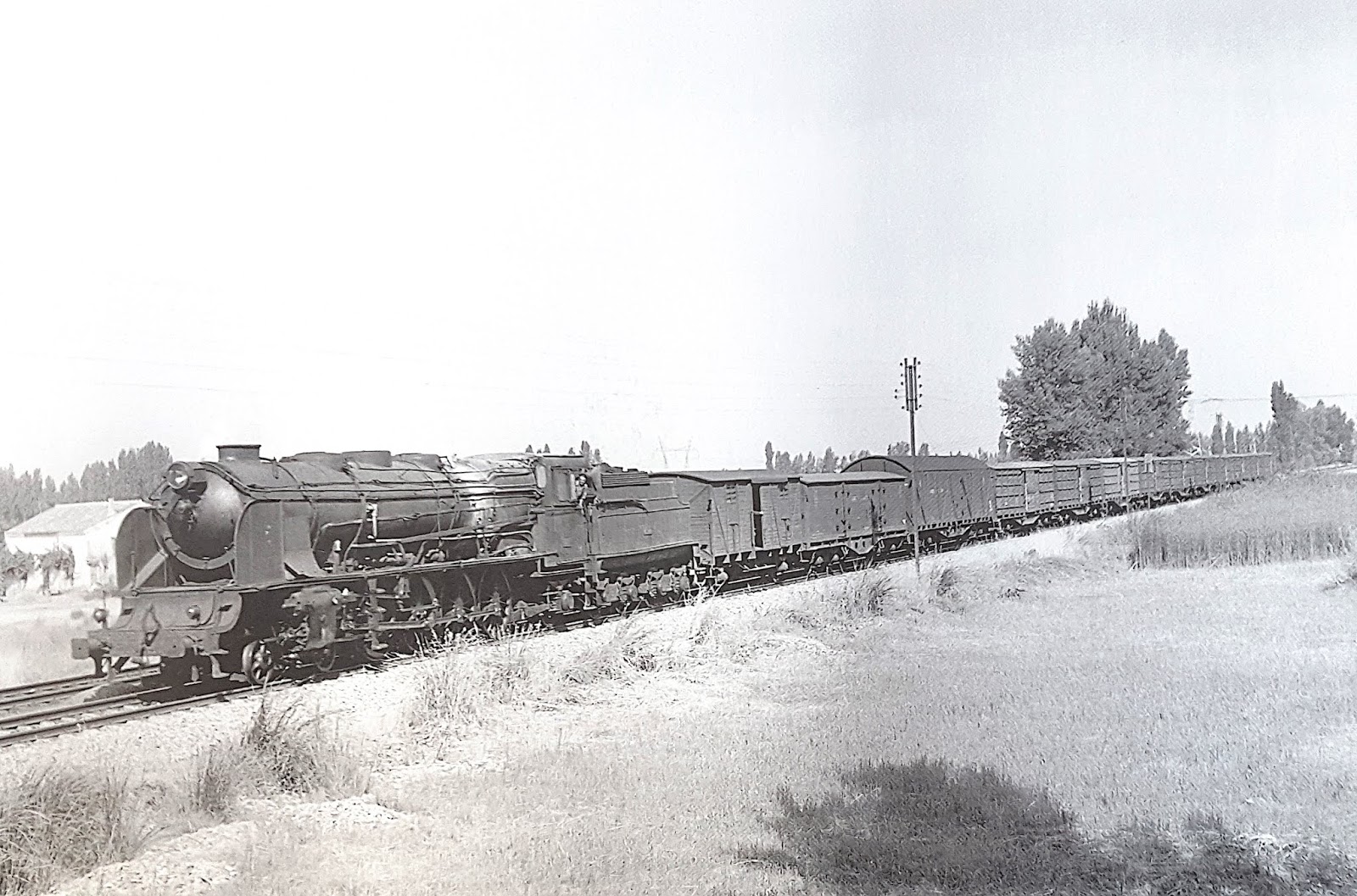 | La 241-4045 con un mercancías cerca de Palencia en 1961 (Harold Navé) |