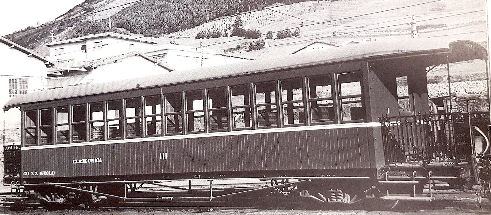 | El coche C1 en Azpeitia (foto: Archivo Euskotren/Museo Vasco del Ferrocarril) |