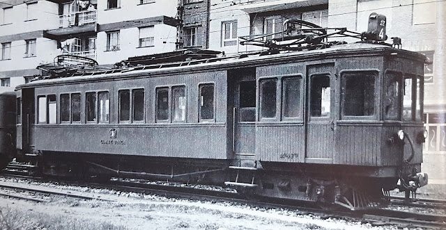 | Al parecer, en enero de 1926 se llevaron a cabo algunas pruebas de los automotores en San Sebastián, probablemente en relación con la circulación por la ciudad del tren real con motivo de la inauguración del ferrocarril. A ellas pertenece esta imagen (foto: Archivo Euskotren/Museo Vasco del Ferrocarril) |