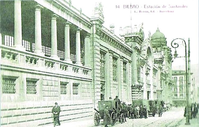 | Antigua imagen de la estación bilbaína de Concordia o de Santander (postal Roisin) |