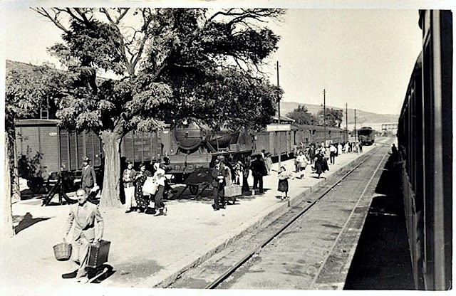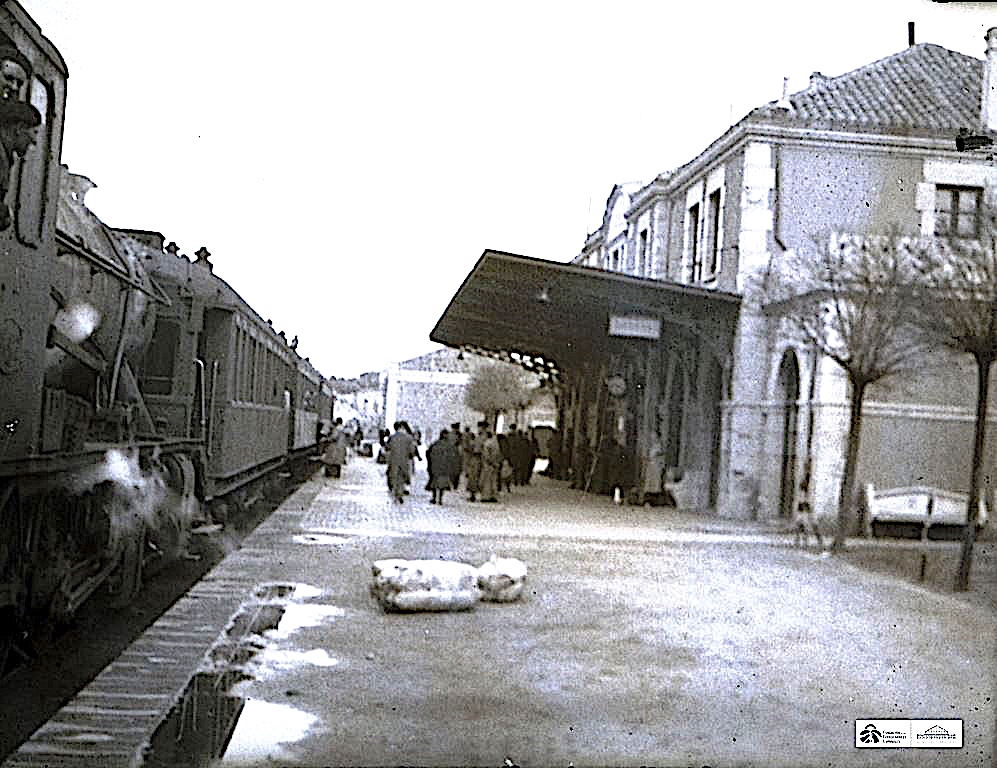 | En la estación de Soria con un típico ambiente ferroviario de la década de los 40-50 (AHF/MFM. Colección Vicente Garrido) |