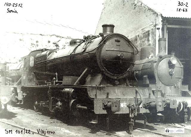 En una entrada anterior me referí a la creación del Ferrocarril Santander-Mediterráneo y a su corta aunque difícil evolución hasta su integración en RENFE. Comentaba también que dispuso de dos series de locomotoras para la tracción en su línea. Una fue la compuesta por cuatro locomotoras del tipo 030T numeradas como SM 12 a 15 -de las que traté en la citada entrada- y otra, más numerosa, compuesta por 22 unidades del tipo 140 construidas, como en el caso anterior, por la factoría Babcock&Wilcox. Fueron las SM 101 a 122 y a ellas va dedicada esta entrada.