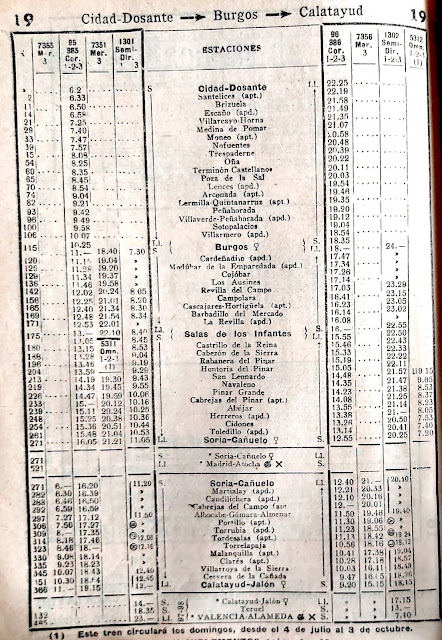 | Horarios del Santander-Mediterráneo -en la práctica Calatayud-Soria-Burgos-Cidad-Dosante- en agosto de 1954 |