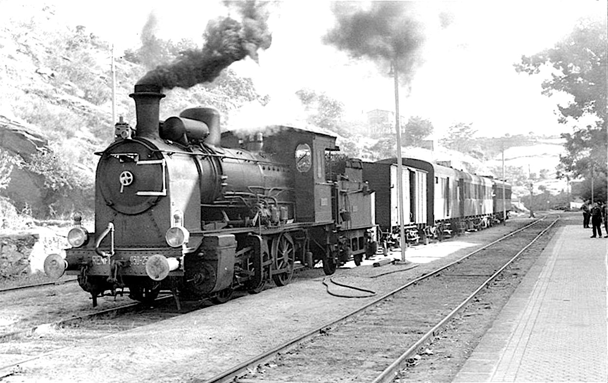 La 030-2559 (ex Oeste 413) en la estación de Barca d´Alva en mayo de 1964. El recorrido de estas locomotoras por la dura línea de La Fregeneda y Barca D´Alba llamó la atención de algunos aficionados ferroviarios y es en esas estaciones donde se obtuvieron muchas fotos de ellas (John Batts)