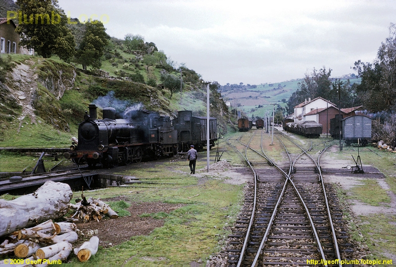 | Una bella imagen de la 030-2560 en el puesto de tracción de La Fregeneda en abril de 1968. Su retirada era ya inmediata pero aún tenía fuerzas para "trepar" hacia Lumbrales (Geoff Plumb/cortesía J.A. Méndez Marcos) |