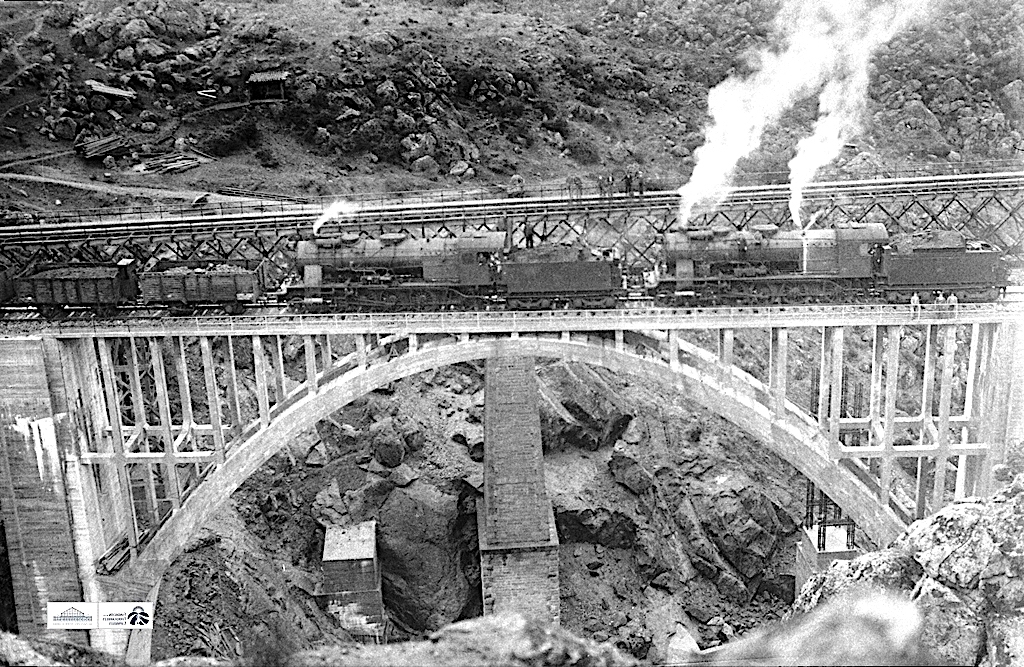 | Dos "miles" participan en las pruebas del nuevo puente metálico sobre el río Jerte (Archivo Histórico Ferroviario del Museo del Ferrocarril de Madrid (AHF/MFM. Autor: J. Salgado) |
