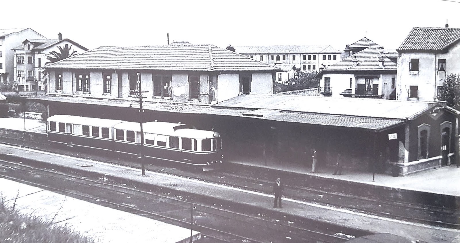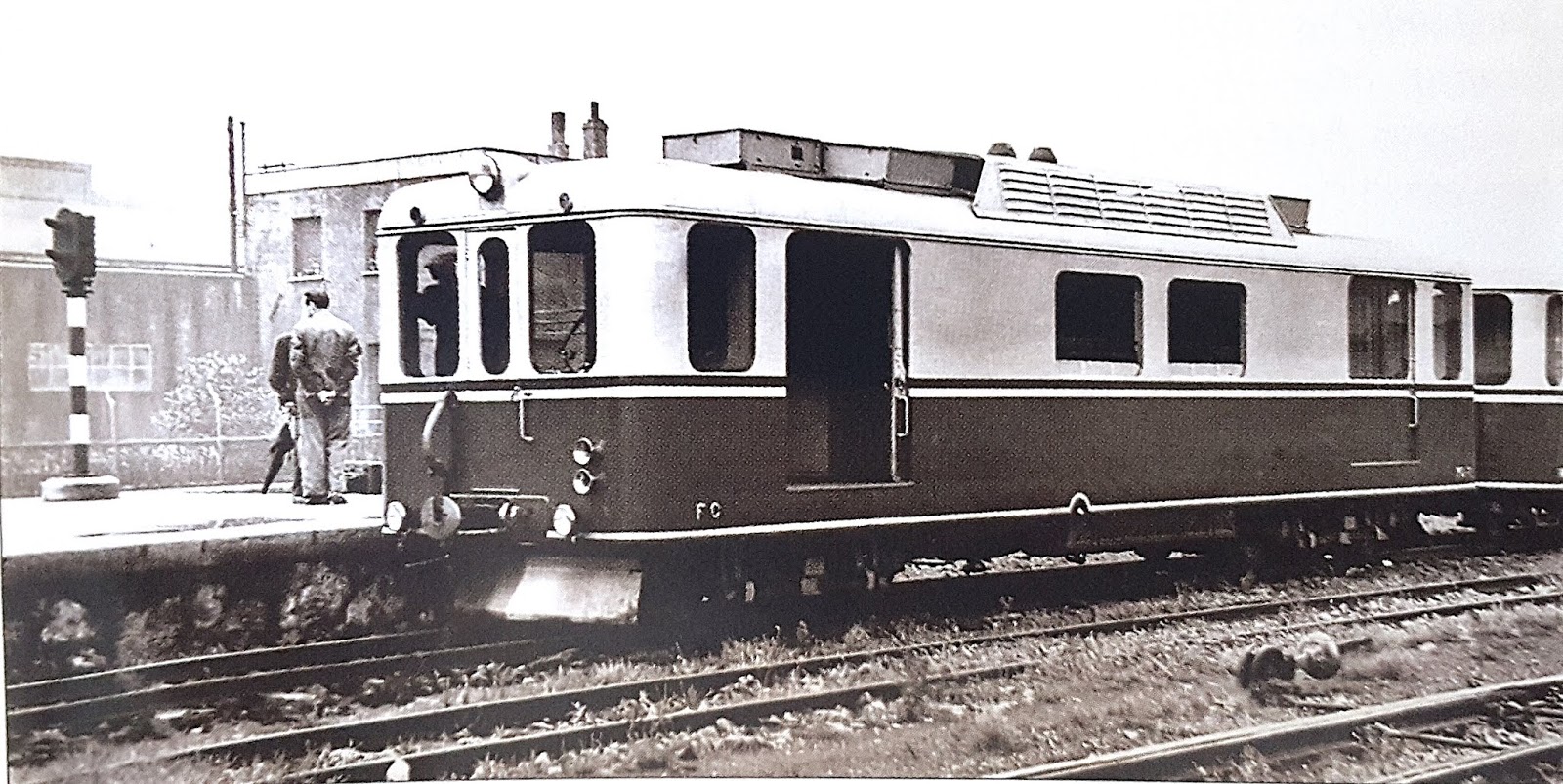 | La rama MCD 1 y RA 1 estacionada en Llanes en 1965 (Museo del Ferrocarril de Asturias) |