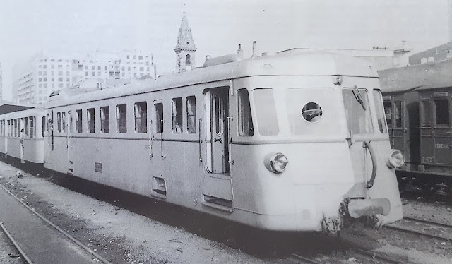 A mediados de los sesenta hicieron su aparición los automotores MAN en el marco de la gran adquisición que se llevó a cabo para diversas compañías ferroviarias. De ellos me ocupé con carácter general en esta entrada del blog. En El Cantábrico se recibieron entre 1966 y 1967 ocho coches motores, los cuatro primeros fabricados directamente por MAN, el cuarto por Euskalduna y los tres últimos por MMC. Fueron matriculados como MC 20 a MC 27. También llegaron desde MMC cuatro remolques que fueron los RAC1 a RAC4.