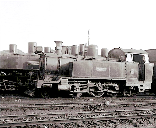 | La Krauss 35 junto a la Borsig 23 en el depósito de Oviedo en mayo de 1962 (L. G. Marshall) |