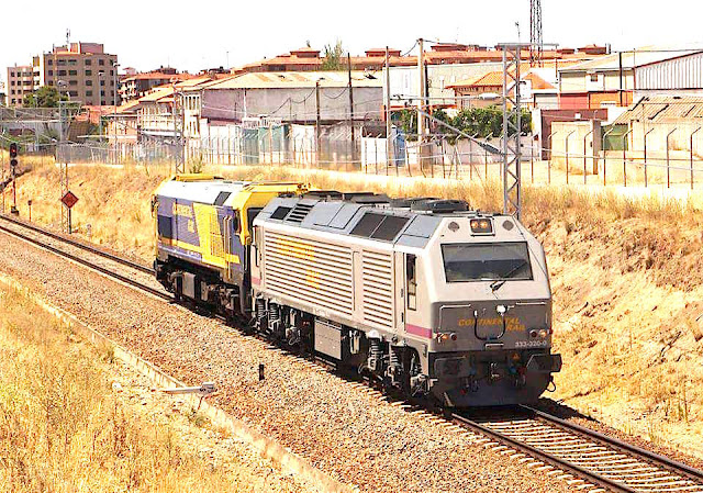 Una 319.300 de Continental Rail remolca a la RENFE-Alquiler 333-320, alquilada por la misma empresa, aunque todavía con la librea de esta última (foto: autor desconocido)