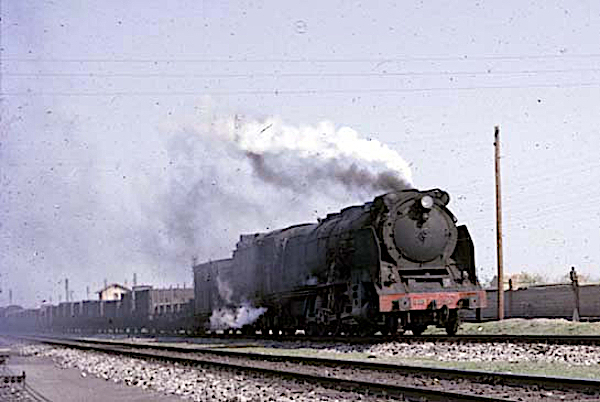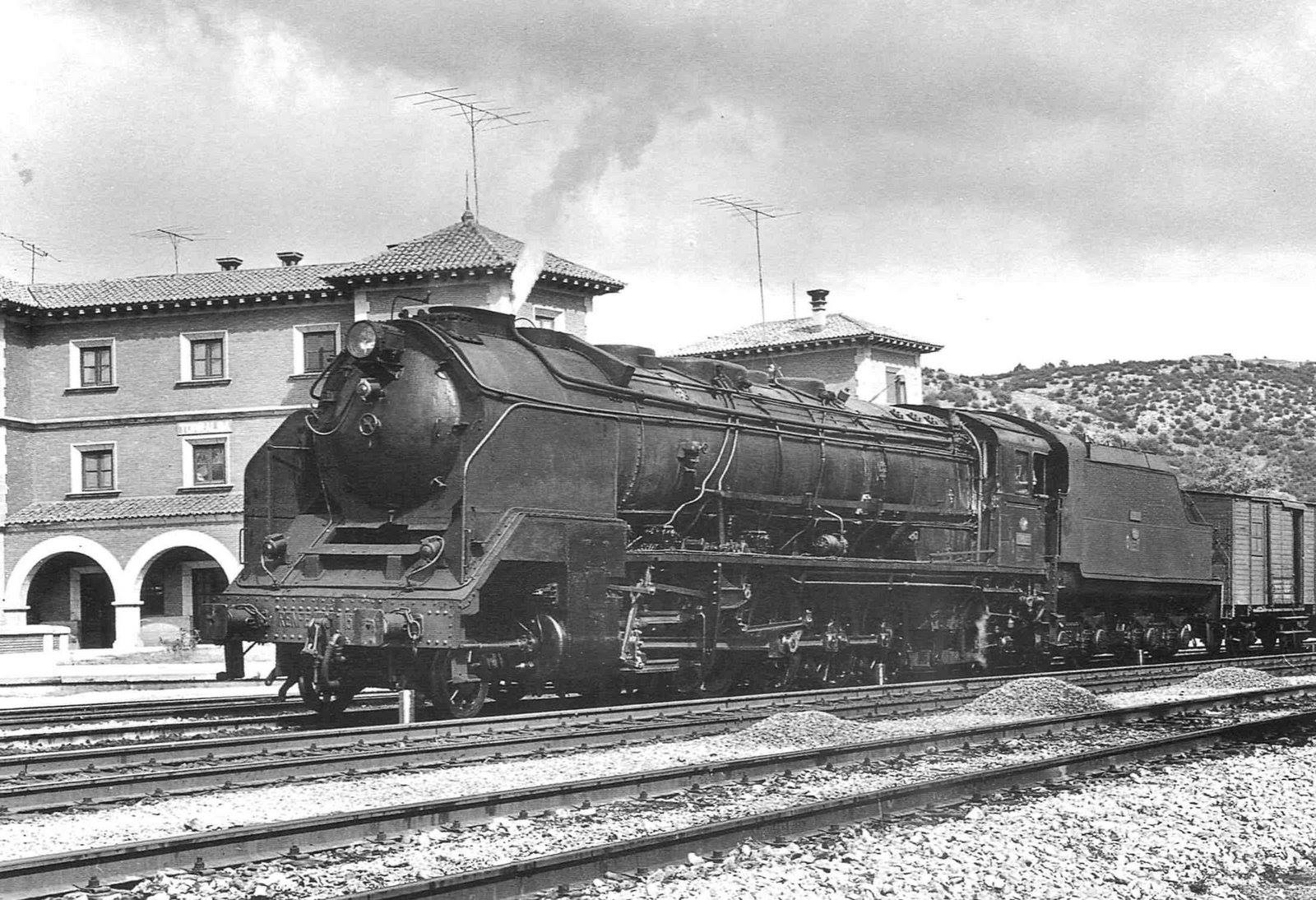 La 3102 con un mercancías hacia Torralba en los años sesenta (M.J. Fox/cortesía J.A. Méndez Marcos) |